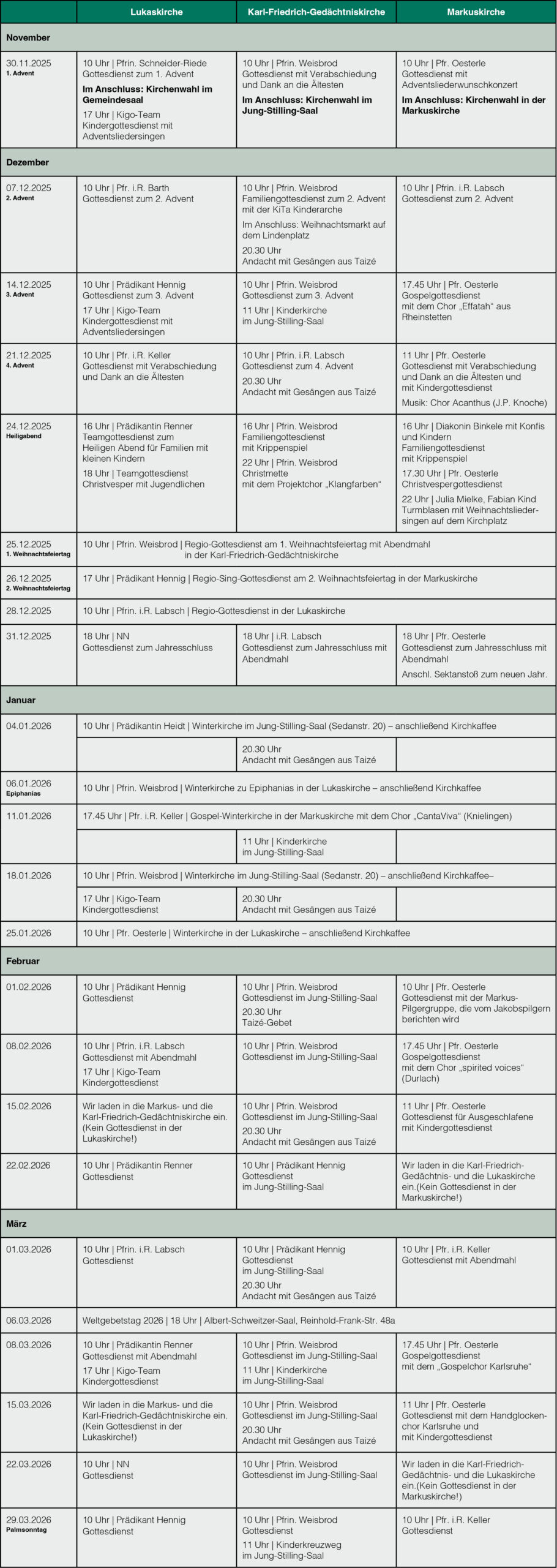 Gemeinsam mit der Lukasgemeinde und der Markusgemeinde bilden wir innerhalb der Evangelischen Kirche in Karlsruhe eine Kooperationsregion – die “Regio West”.
